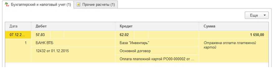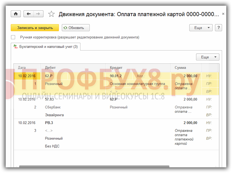 Проводки по эквайрингу в розницу документа Оплата платежной картой