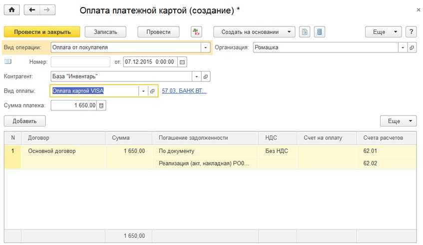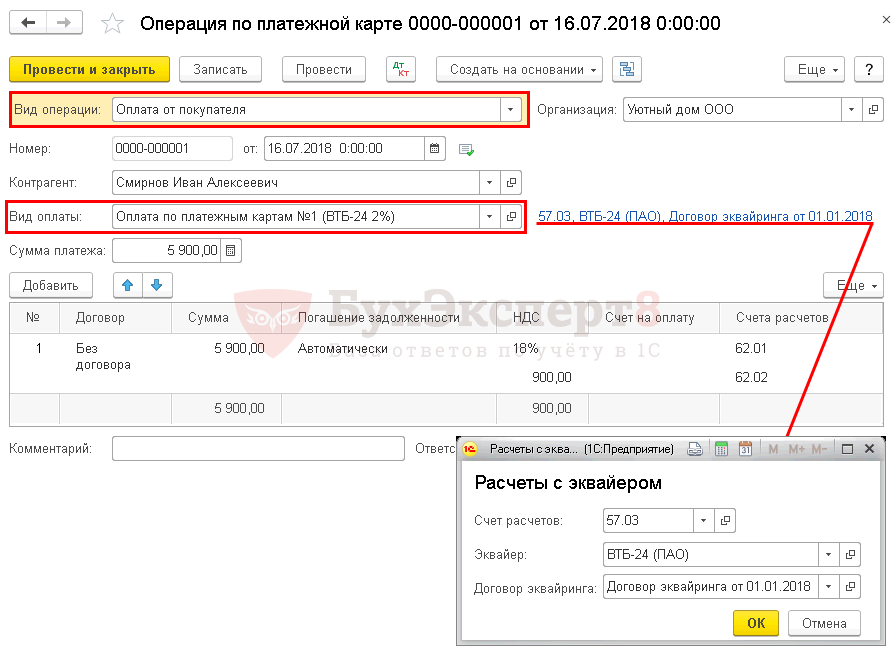 Шаг 2. Как отразить эквайринг в 1С 8.3