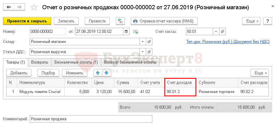 Поэтому в связи с автоматизацией розничных операций мы их затрагивать в этой статье не будем, а рассмотрим обычную реализацию товаров и услуг и оплату данного документа платежной картой.