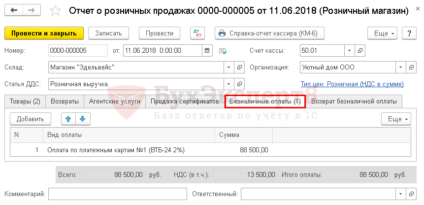 Шаг 3. Учет эквайринга в 1С 8.3 при розничной торговле