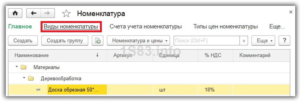 Что такое вид номенклатуры в 1С 8.3 и как их настроить