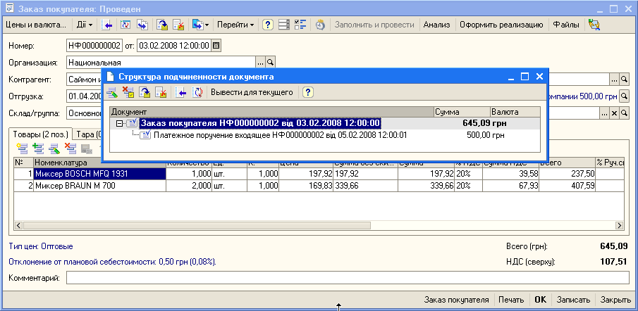 При этом автоматически будет создан документ Счет-фактура полученный на поступление, а в форме документа-основания появится гиперссылка на созданный счет-фактуру.