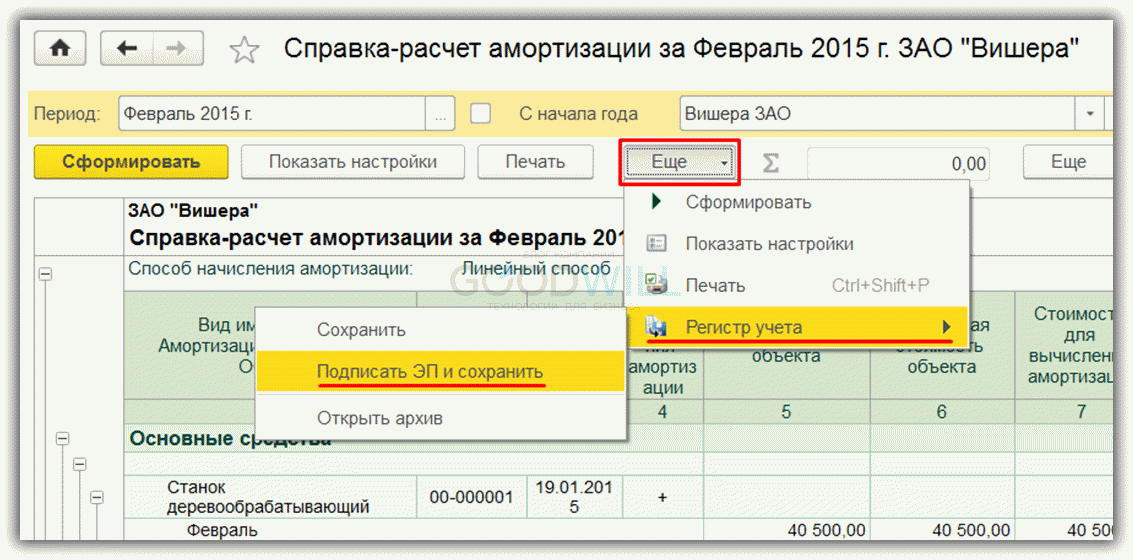 . Таким образом, регламентная операция Амортизация и износ основных средств