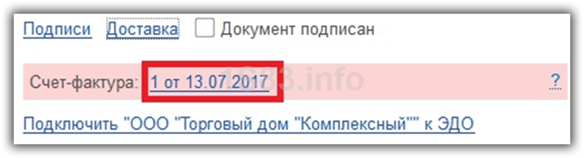 В нижней части формы можно увидеть ссылку на созданную ранее счет-фактуру: