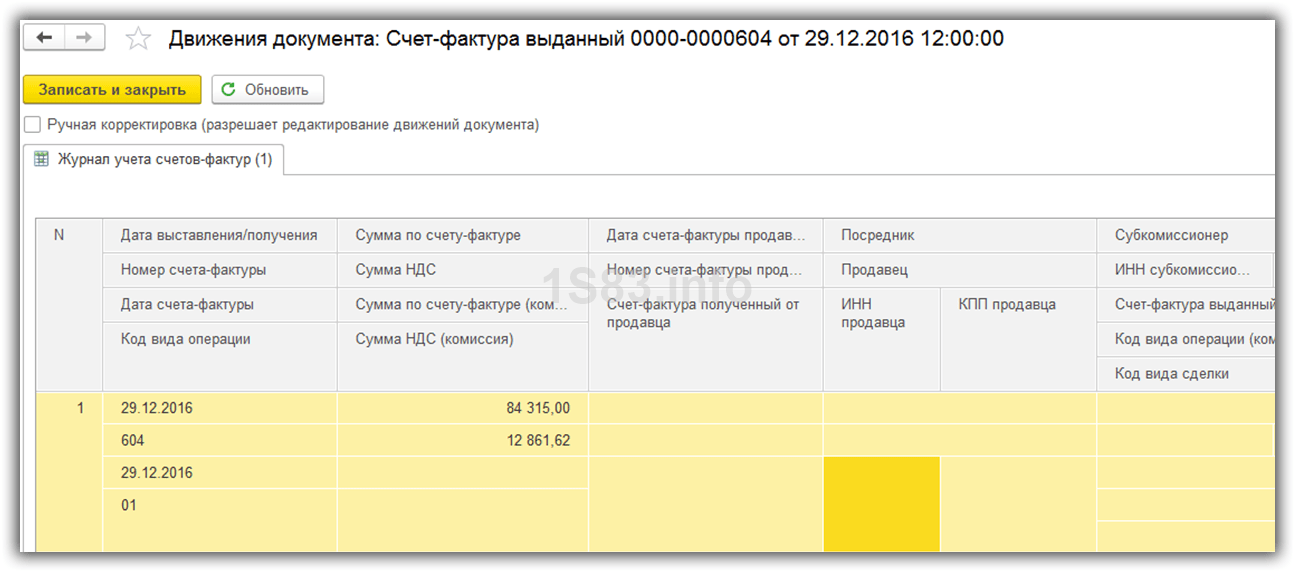 Счет-фактура создастся и заполнится автоматически и будет доступен по соответствующей гиперссылке.