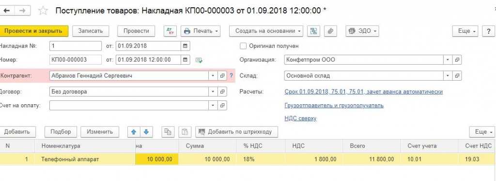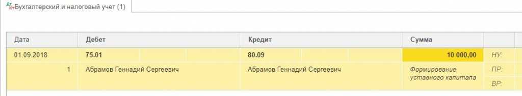 Взнос уставного капитала 1С:Бухгалтерия 8.3