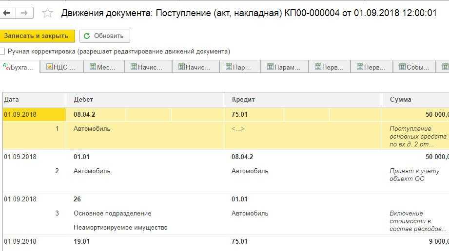 Затем жмем «Провести», и проверяем проводки с помощью кнопки ДтКт.