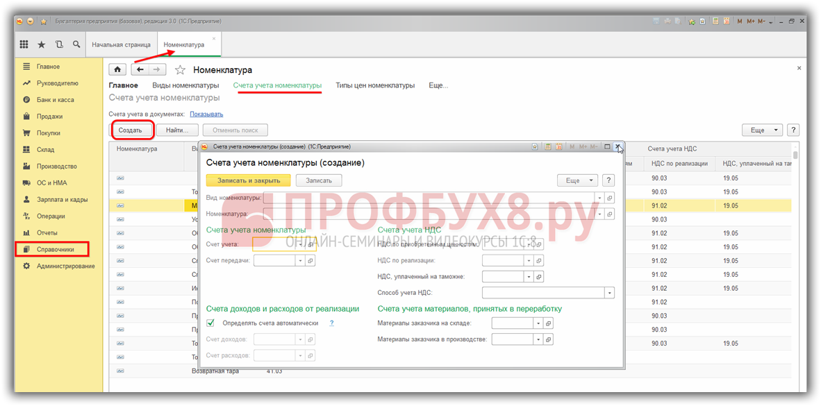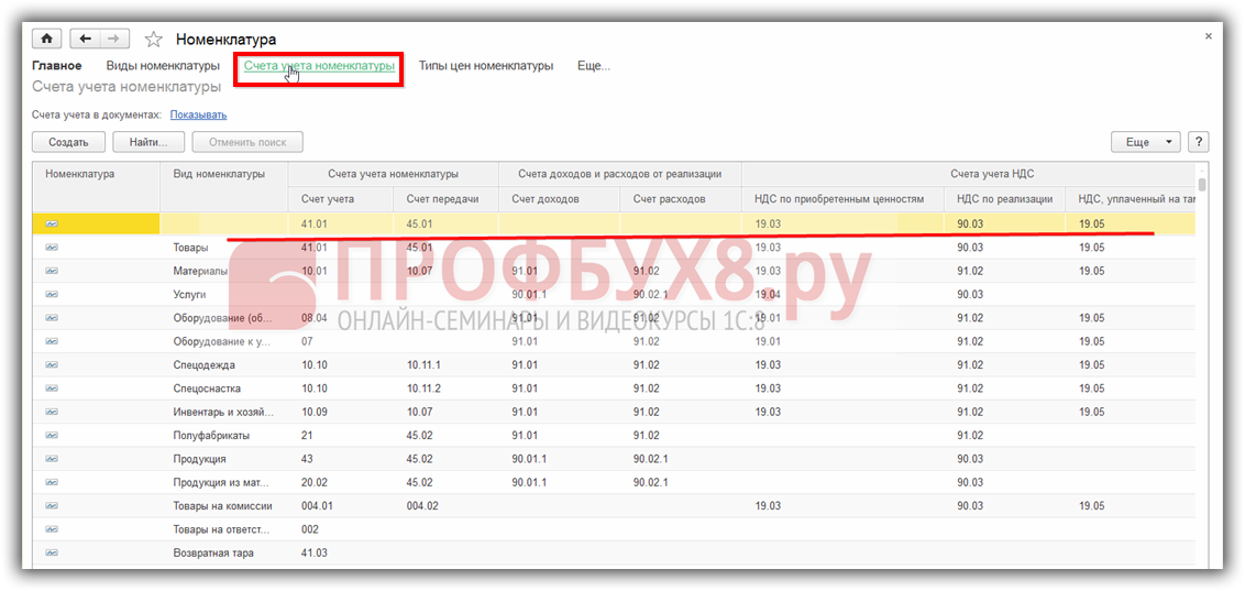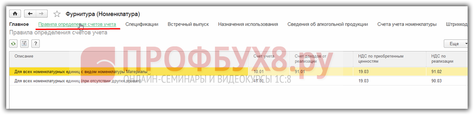 Настройка счетов учета Номенклатуры в 1С 8.3