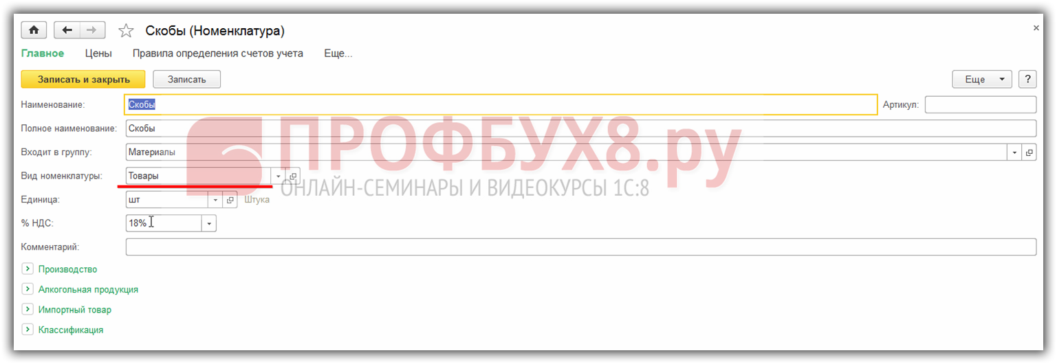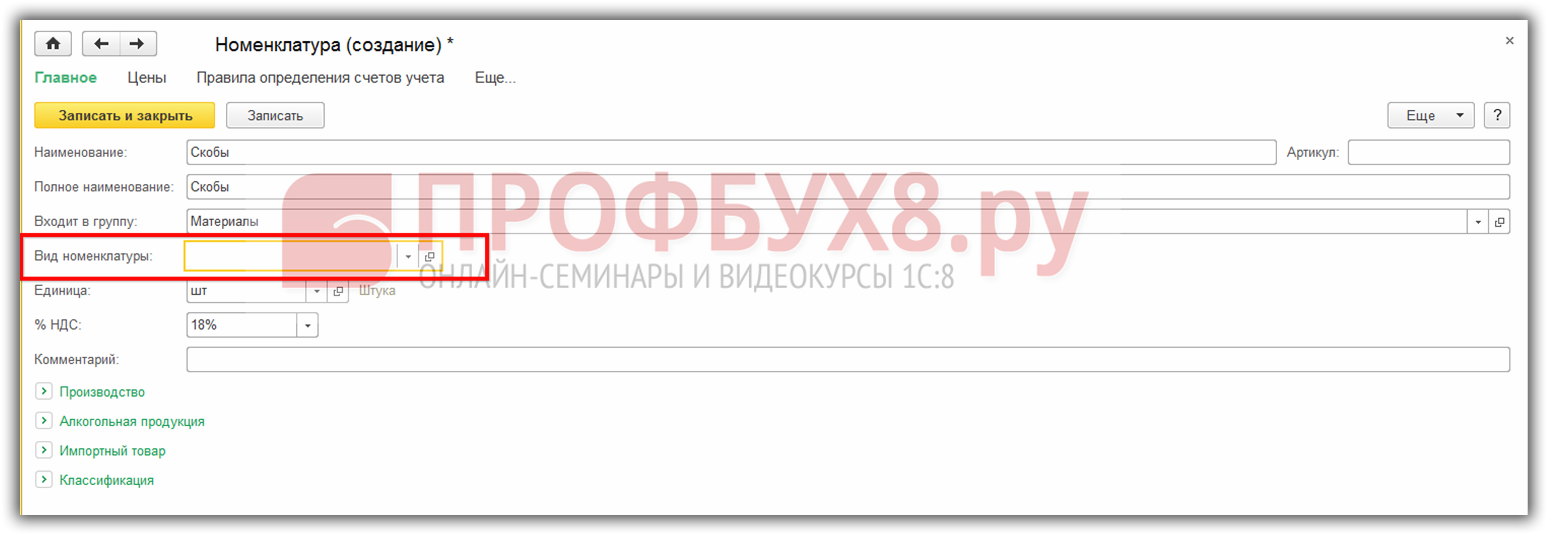 так как программа 1С 8.3 автоматически подставляет именно этот вид номенклатуры: