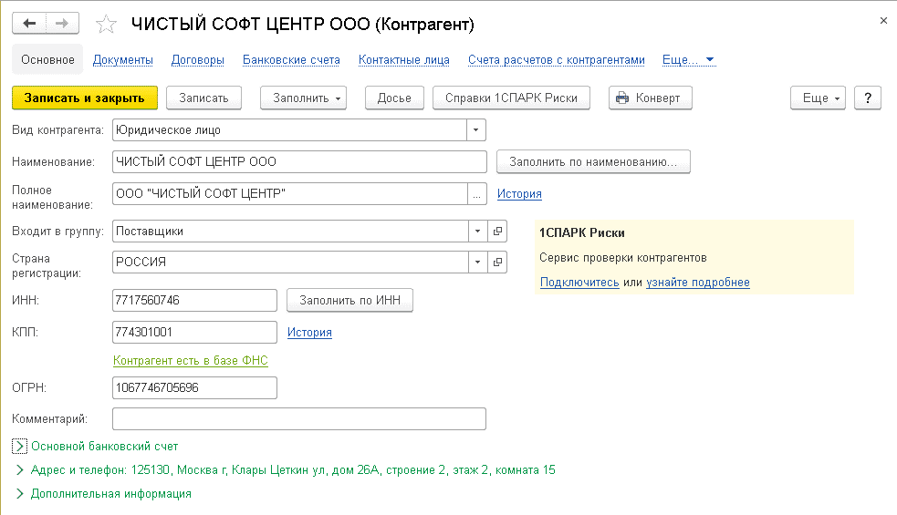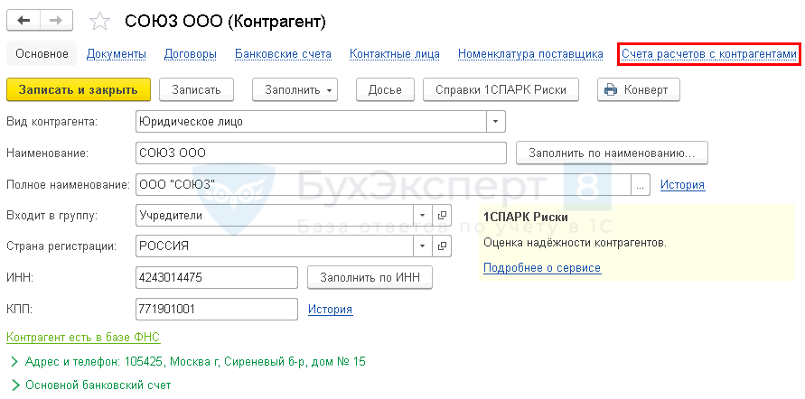 Как прописать счет расчетов с контрагентом в 1С 8.3 на примере