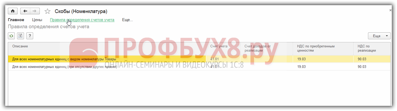 Это следует учитывать, когда заводите новую группу номенклатуры или, например, склад. После создания нового объекта программа не найдет его в настройках и применит универсальную настройку.