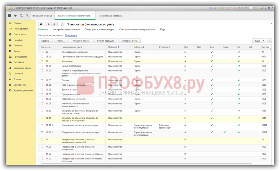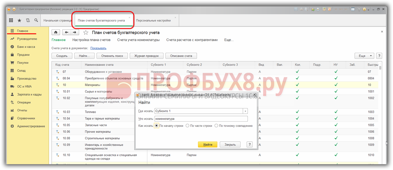 Настройка плана счетов в 1С