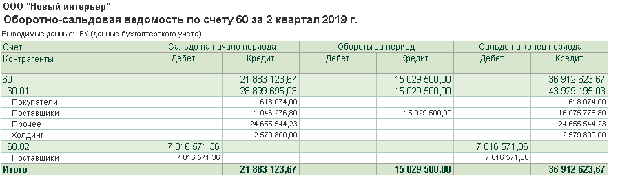После этого нажмём кнопку «Сформировать» и увидим, что 10 000 действительно зависли на 62.02 (авансы полученные от покупателей):