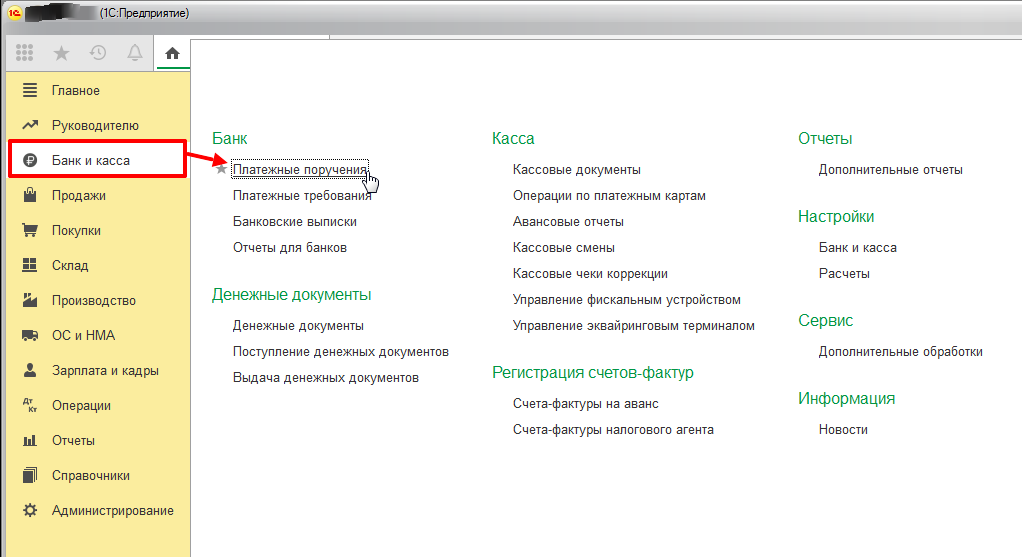 Где находятся Платежные поручения в 1С?
