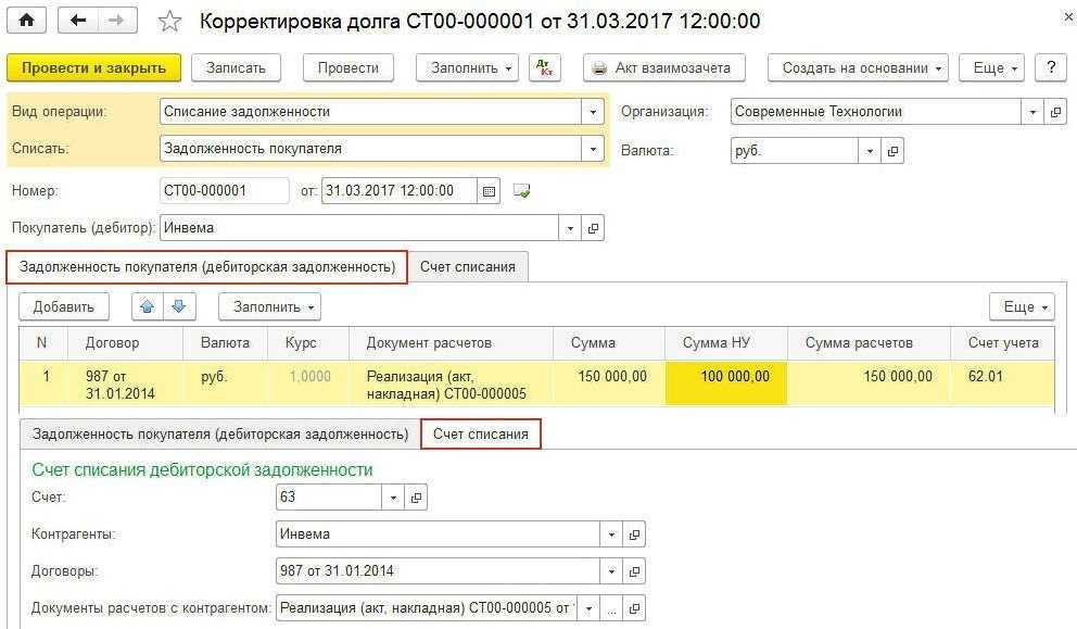 Существует два способа сделать взаиморасчет и корректировку долга в 1С 8.3: частичное погашение долга и полное (долг будет полностью погашен). Рассмотрим пошаговую инструкцию.