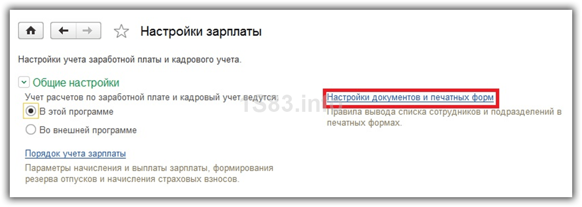Помимо прочего вы так же можете изменить способ упорядочивания списка сотрудников в документах и произвести настройки печатных форм.