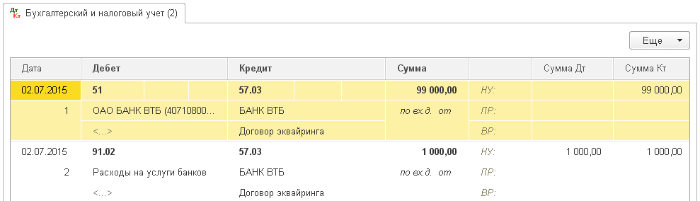 91.02 (прочие расходы) 57.03 (переводы в пути) 1 000 (расходы на оплату комиссии за эквайринг)