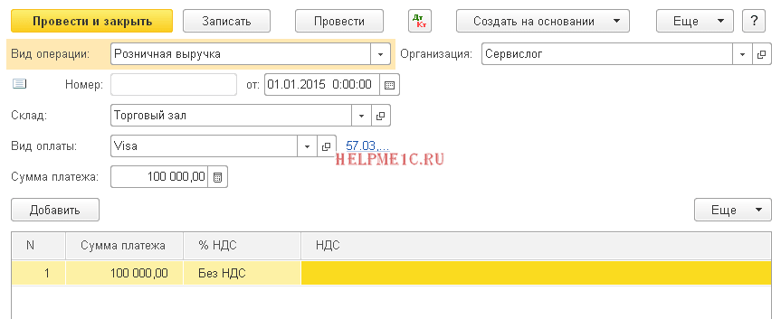 Кстати, если бы выручка была не розничная (62.Р), а обычная оплата от покупателя (конкретного контрагента) — нам просто следовало выбрать в качестве вида операции «Оплата от покупателя» и тогда везде вместо 62.Р будет фигурировать 62.01 с указанием выбранного нами покупателя (контрагента).