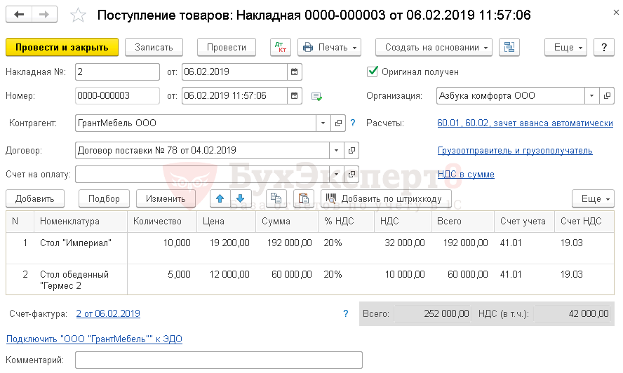 Сначала должен быть внесен первоначальный документ поставки (в нашем случае – товара) и данные первичной СФ. Порядок заполнения этих документов и проводки знакомы бухгалтерам, но если вопросы все-таки возникнут обращайтесь за помощью консультантов 1С, связавшись с нами любым удобным для вас способом. Мы с радостью вам поможем!.