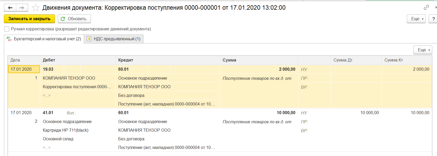 Рассмотрим на примере формирование в программе универсального корректировочного документа.