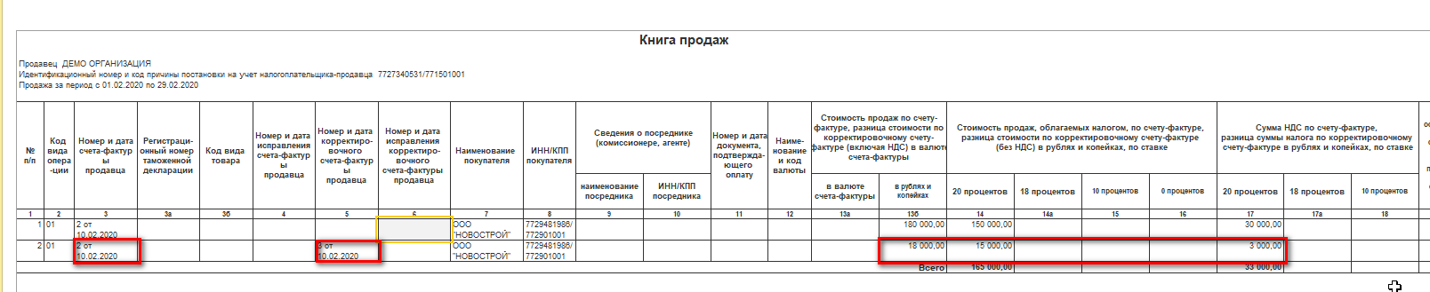 Отражение корректировочного счета-фактуры в книге покупок и продаж