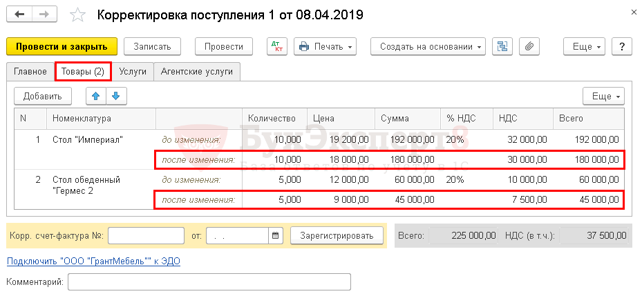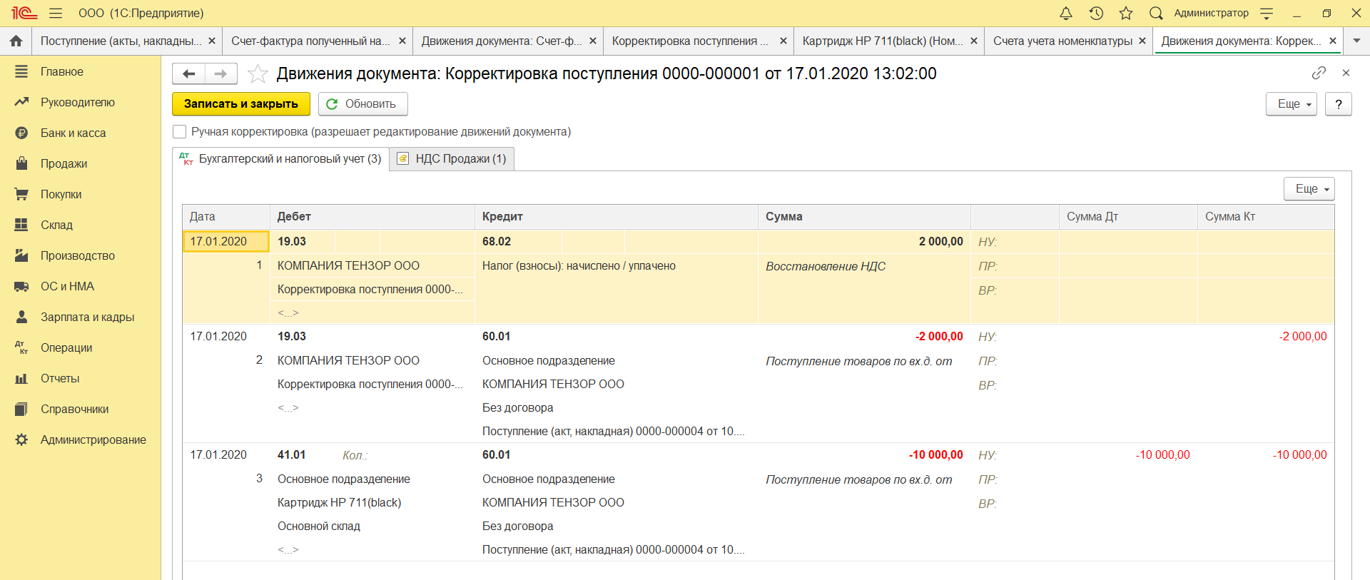 Корректировочный счет-фактура в 1С 8.3 у покупателя