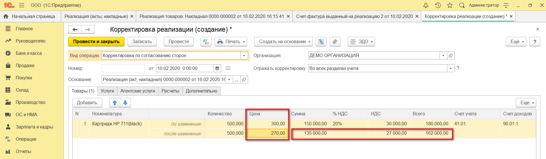 Корректировочные счета-фактуры в «1С:Бухгалтерии 8»