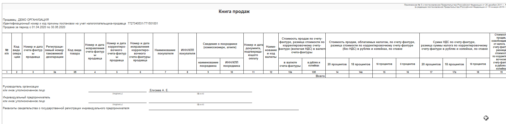 Далее формируем книгу продаж, корректировка успешно в ней отразилась.
