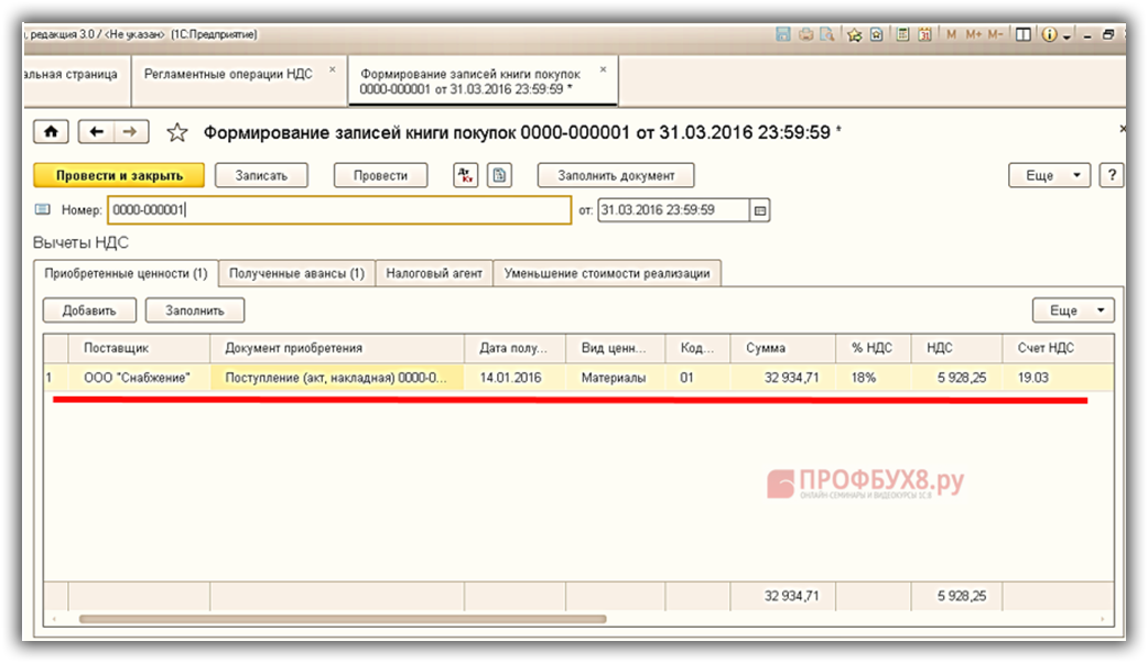 Как заполнить документ Формирование записей книги покупок в 1С 8.3