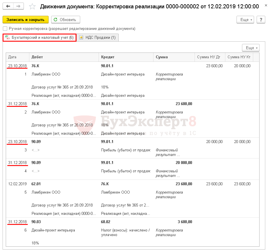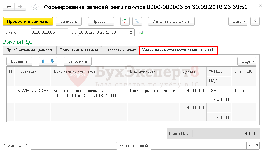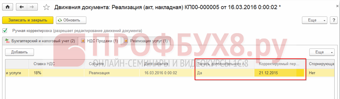 Корректировка реализации в 1С УПП Формирование документов по НДС