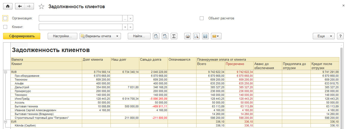 - контролировать текущее состояние расчетов, определять просроченную задолженность.