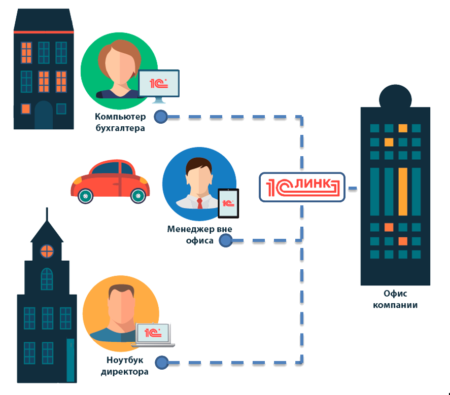 Это не просто отдельная программа, а целый сервис делающий возможным создание удалённых подключений к офису из любых мест, где есть интернет.Неважно, где находится пользователь: в офисе, дома или на отдыхе в другой стране. Главное условие для работы в информационной базе предприятия — это наличие интернета.При этом соединение полностью безопасно, ведь сами информационные базы по-прежнему хранятся на компьютерах пользователей