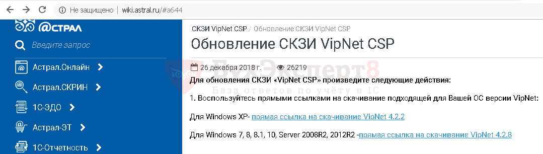 Шаг 3. Обновите версию криптопровайдера по инструкции оператора Калуга Астрал, если: