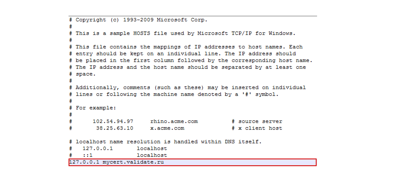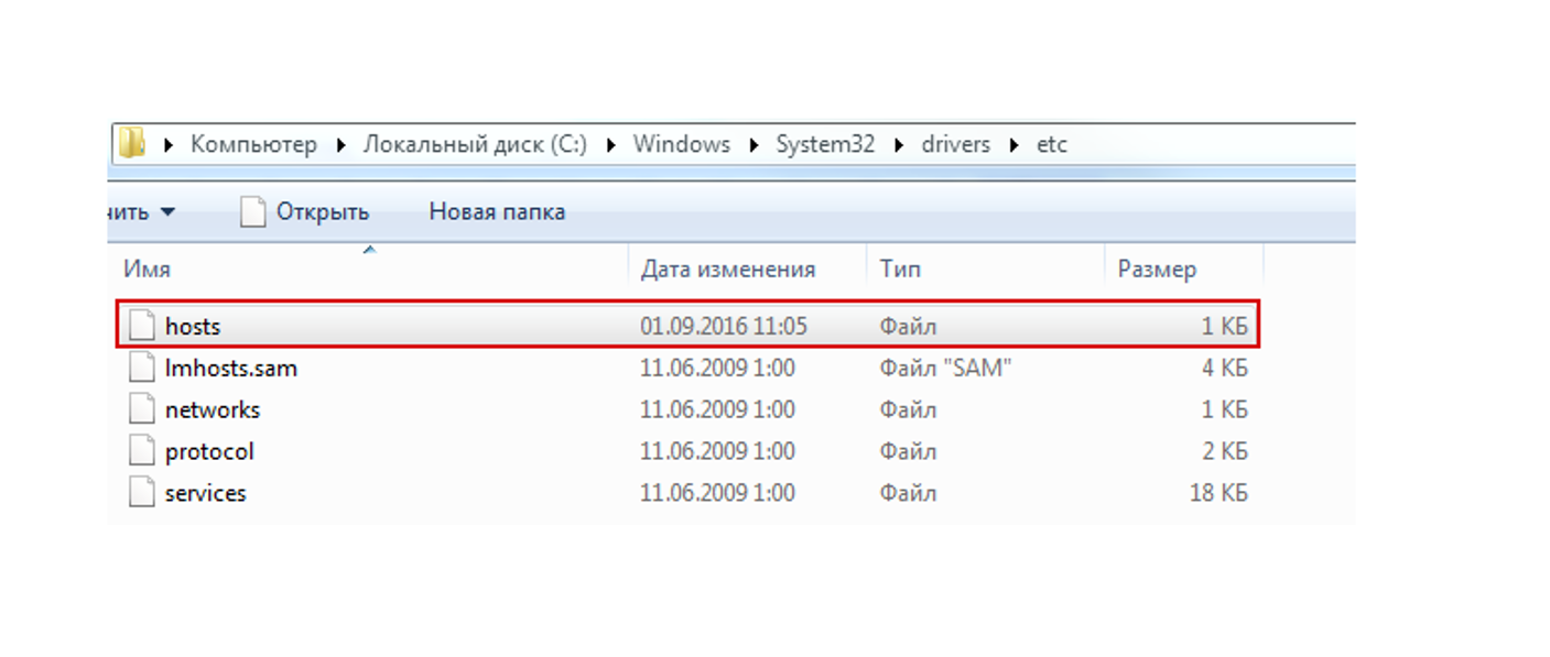 Доступ к сайтам может также быть ограничен параметрами, прописанными в данном файле. Пример блокировки выглядит так: