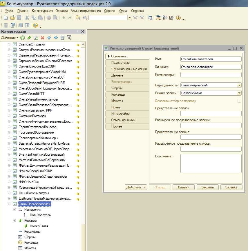 Если программой пользуются несколько пользователей, предпочитающих разные размеры букв, полезно будет проделать ещё некоторые манипуляции. В частности, перейдите в меню «Операции», проследуйте «Регистры сведений», после этого выберите «Стили пользователей». В открывшемся окне пропишите тех пользователей, которые нуждаются в большом размере шрифта. Напротив выбранного пользователя установите 1 в поле «Номер стиля».