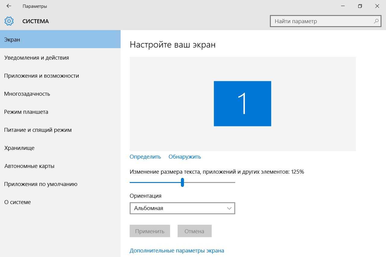 Наконец Microsoft услышала своих рабов и скрестила свои новинки со старой привычной и любимой организацией рабочего пространства из Windows XP-7. Идем «Пуск» — «Параметры» — «Система» — «Экран» и там в правой части окна таскаем ползунок до требуемого результата.