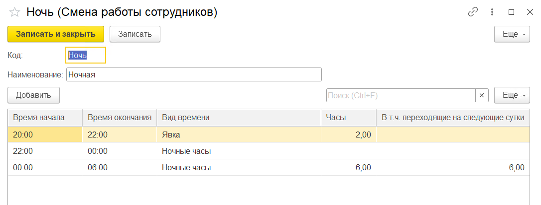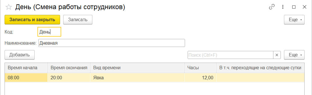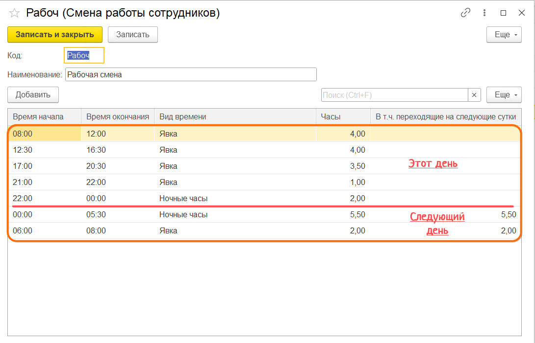 Можно идти другим путем – идти от настройки более простых элементов к более сложным: Смена – Графики работы – Режим работы.