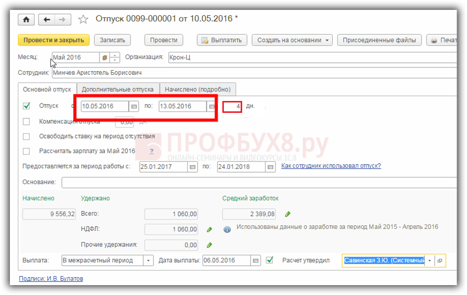 Рассмотрим, как настроить и рассчитать дополнительный отпуск в программе 1С Зарплата и Управление Персоналом.
