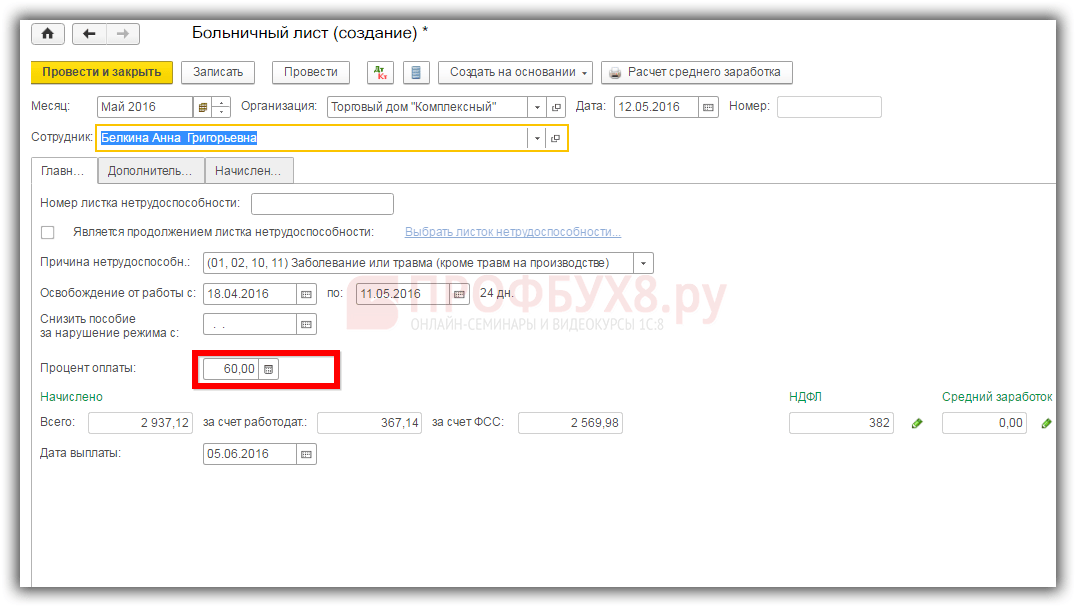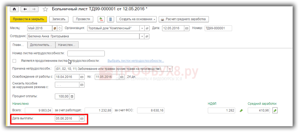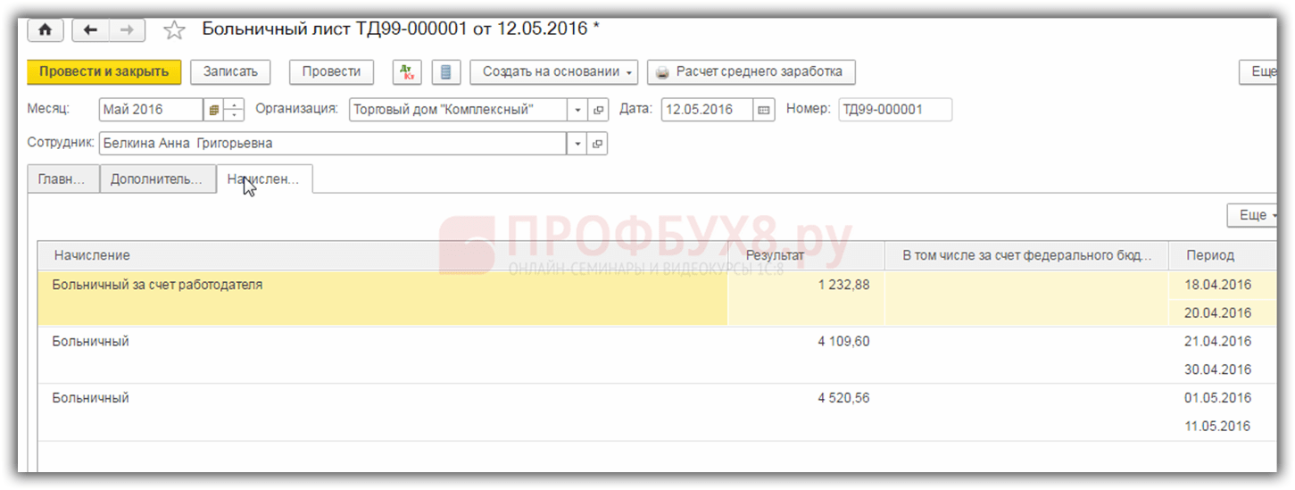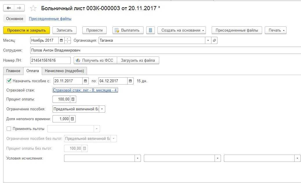 Начисление и расчет больничных в 1С Бухгалтерия 8.3 по шагам