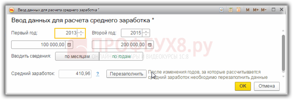 В открывшейся форме мы видим поля для ввода ежемесячного заработка за два предыдущих календарных года.