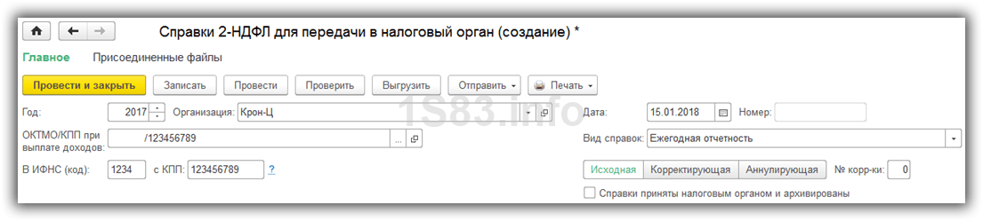 Вид справок в нашем случае – «Ежегодная отчетность». Так же у данного поля доступно значение «О невозможности удержания НДФЛ».