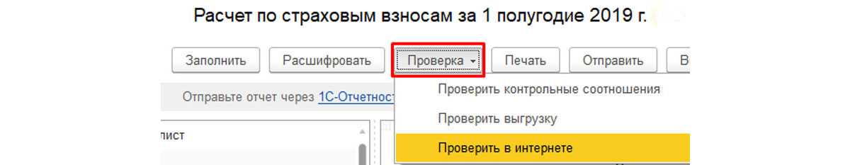 Следующим отчетом:БП: Зарплата и кадры – Отчеты по зарплате – Проверка расчета взносовЗУП: Налоги и взносы – Отчеты по налогам и взносам – Проверка расчета взносов