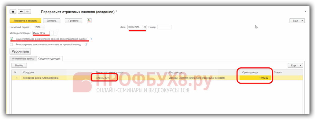 . После автоматического расчета доначисления нажать Провести и закрыть