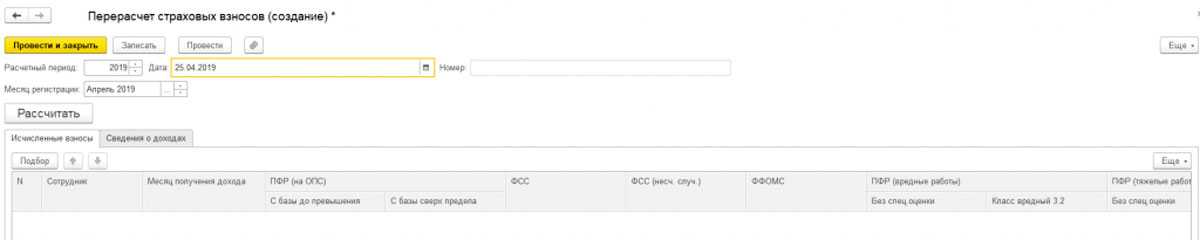 В результате на экран выводится форма нового экземпляра отчета Расчет по страховым взносам