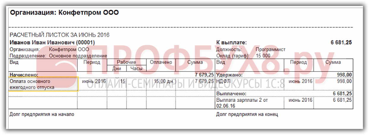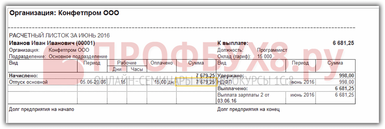 Сумму отпускных мы уменьшили, учтите это при окончательном расчете за месяц.