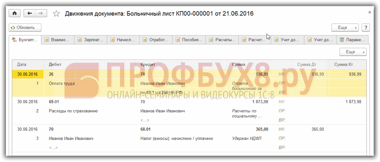 Таким образом, программа 1С ЗУП больничным листом вытеснила (сторнировала) начисление отпуска.
