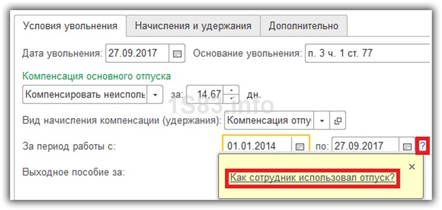 Как в 1С 8.3 начислить компенсацию за неиспользованный отпуск