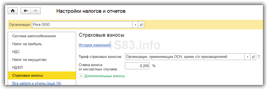 Далее перейдите в раздел «Страховые взносы» и приведите данные настройки в соответствие.