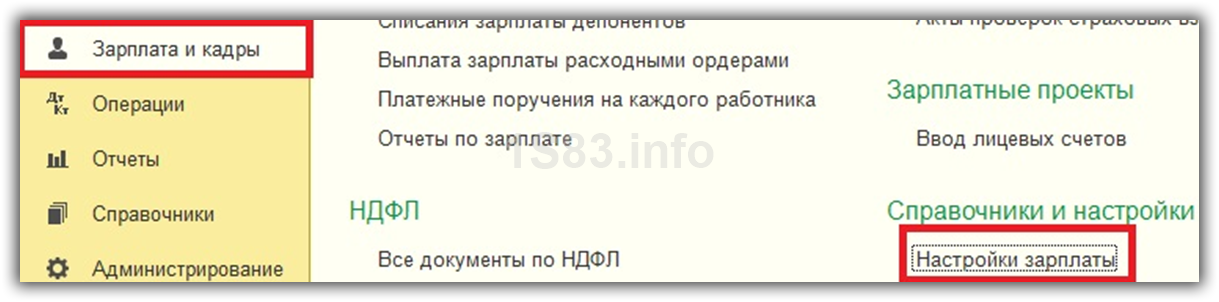 В меню «Зарплата и кадры» перейдите в пункт «Настройка зарплаты».