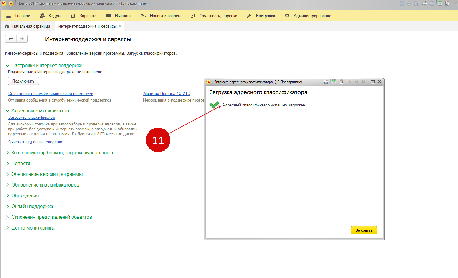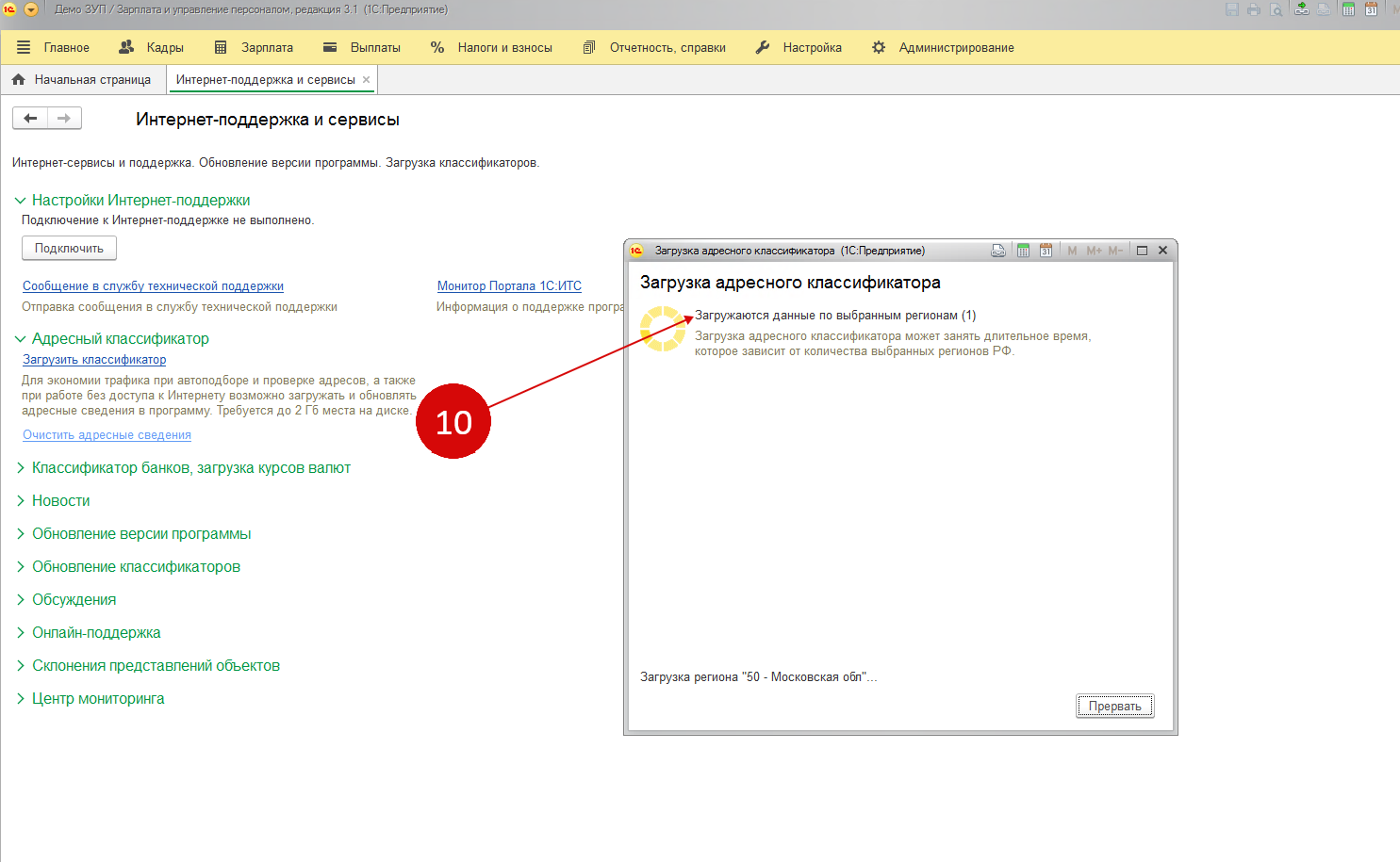 Далее жмем Загрузить адресный классификатор и ждем окончания загрузки.